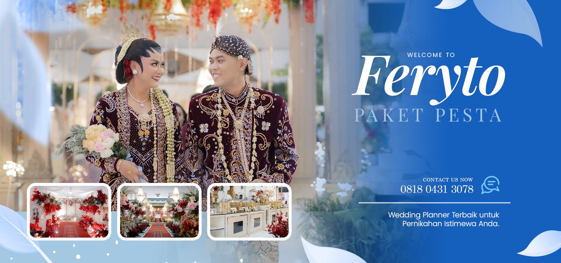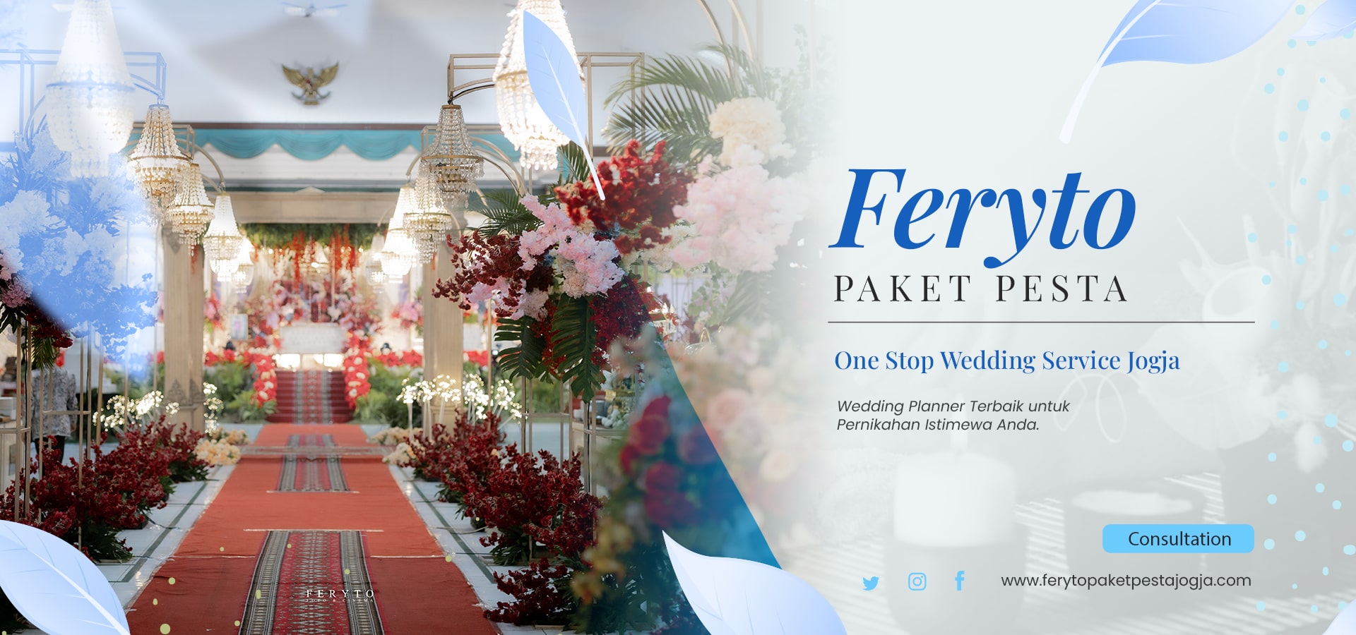 Feryto Paket Pesta adalah layanan One Stop Wedding Service yang berbasis di Yogyakarta, hadir untuk membantu setiap pasangan mewujudkan pernikahan impian mereka. Kami menyediakan layanan lengkap seperti wedding planner, wedding consultant, wedding organizer, event organizer, hingga pengarah acara adat, dengan dukungan tim profesional yang berpengalaman dan berdedikasi tinggi.